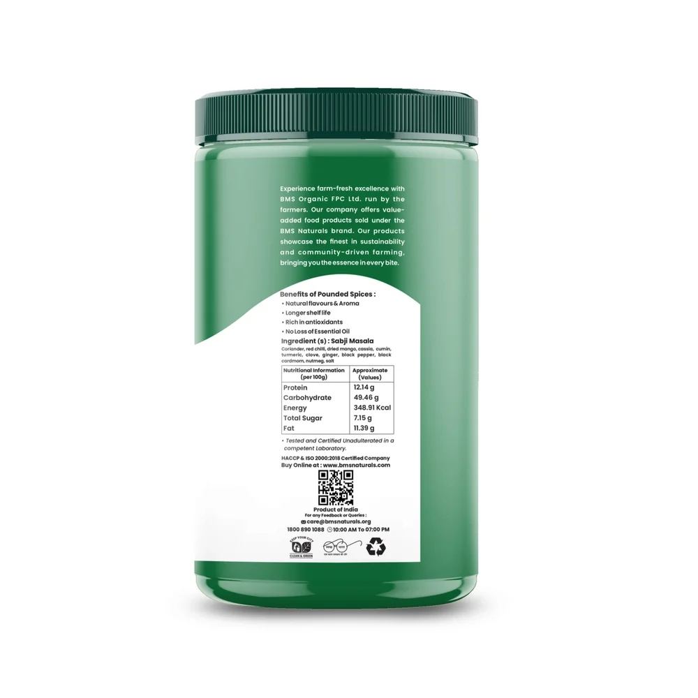 Our Sabji masala is crafted with precision, combining aromatic spices like cumin, coriander, turmeric, fenugreek, and more to create a harmonious flavor profile that complements a variety of vegetables. Whether you're cooking stir-fries, curries, or vegetable side dishes, our Sabji Masala Pounded adds depth and richness to every bite. Elevate your vegetarian cooking and delight your taste buds with the vibrant flavors of our premium Sabji Masala Pounded.